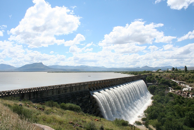 The Van Ryneveld's Dam was recently renamed to the Nqeba Dam. The dam's construction had started in 1921 and had been completed in 1925. It cost in the region of £450,000. The damwall is 381m wide and 32m high.