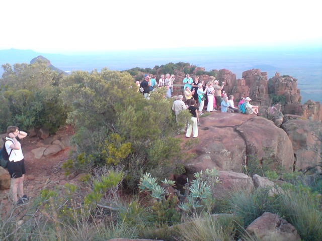 From the parking lot hikers follow a cobbled pathway to the first Valley viewpoint, where there is an information panel that interprets the geological and paleontological history of the Karoo. Black eagles are often seen at close range and the high speed manoeuvres of the alpine swift, hold many a visitor spellbound! From here hikers progress to the second viewpoint which offers a breathtaking view of piled dolerite columns against the backdrop of the plains of Camdeboo and a timeless sense of wonder at a landscape said to be the product of the volcanic and erosive forces of nature, over a period of 100 million years. After the second viewpoint there is an option for a quick return to the car park, or to continue with the trail along the rim of the cliff edge, which provides even more impressive views of the rock formations. There are numerous precipices and crevasses along this section of the trail and due care needs to be taken especially if there are children in the group.